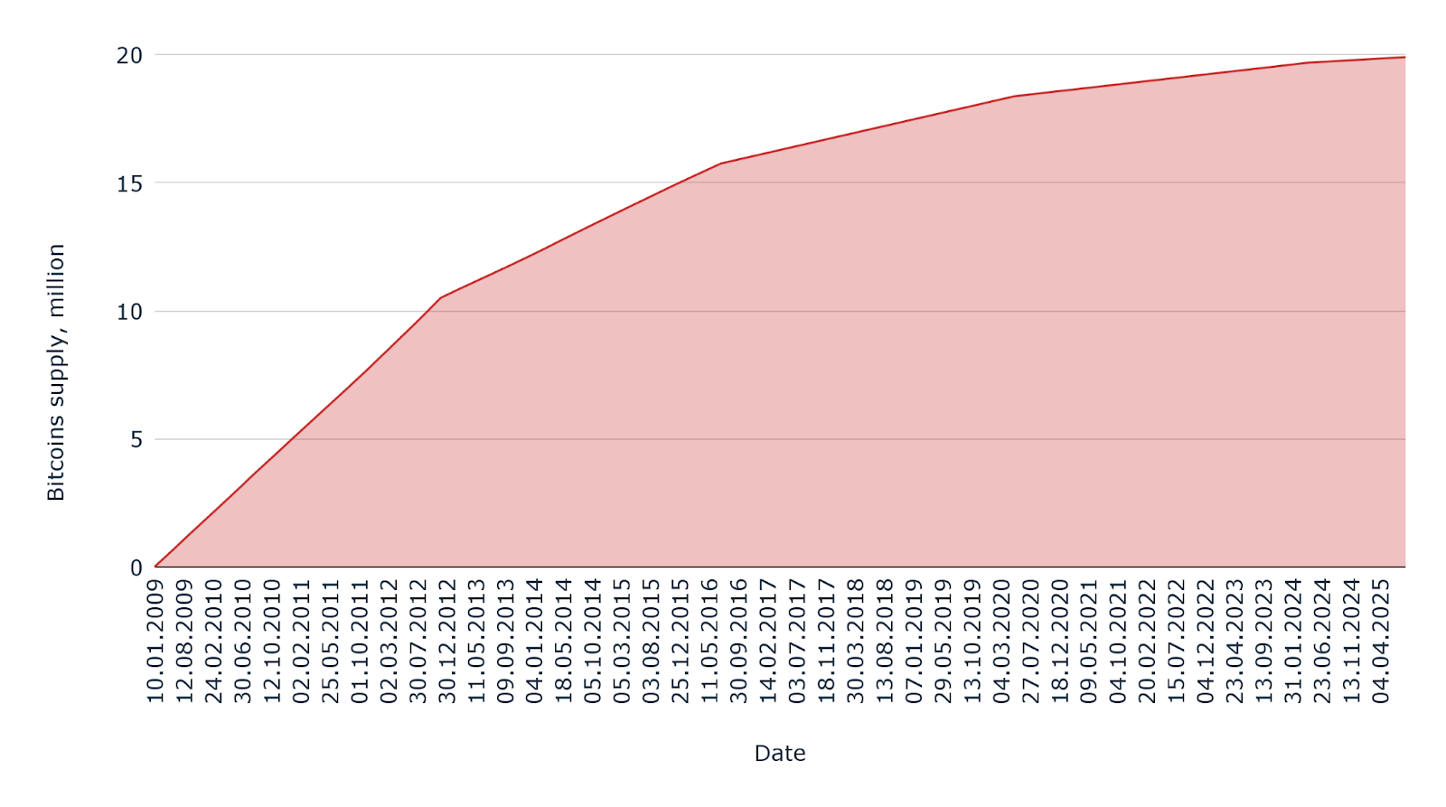 - 19.88 million BTC mined as of August 2025.